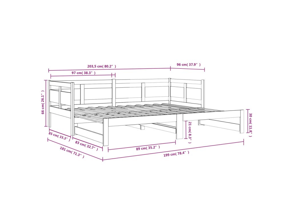 - Rozkládací design: Dřevěná válenda funguje také jako výsuvná postel, lze ji tedy snadno přeměňovat ve dne na pohovku a v noci na pohodlnou postel.
