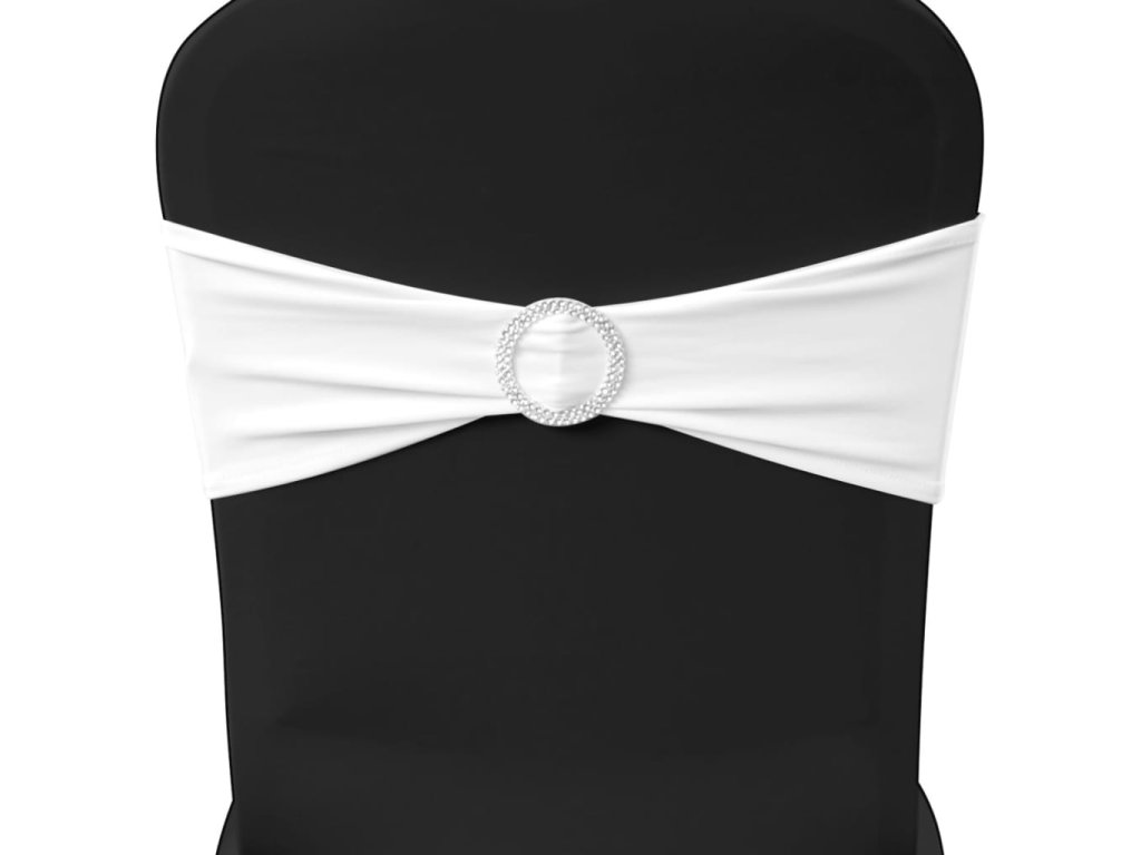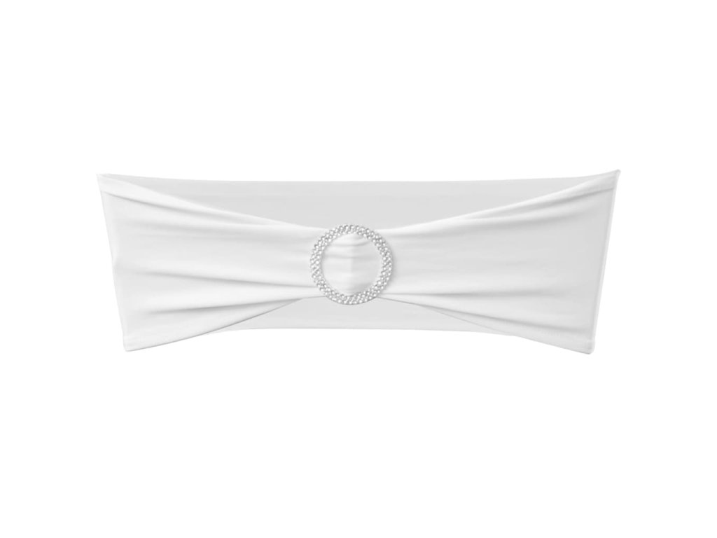 25 ks bílá natahovací šerpa na židle s diamantovou přezkou 130345