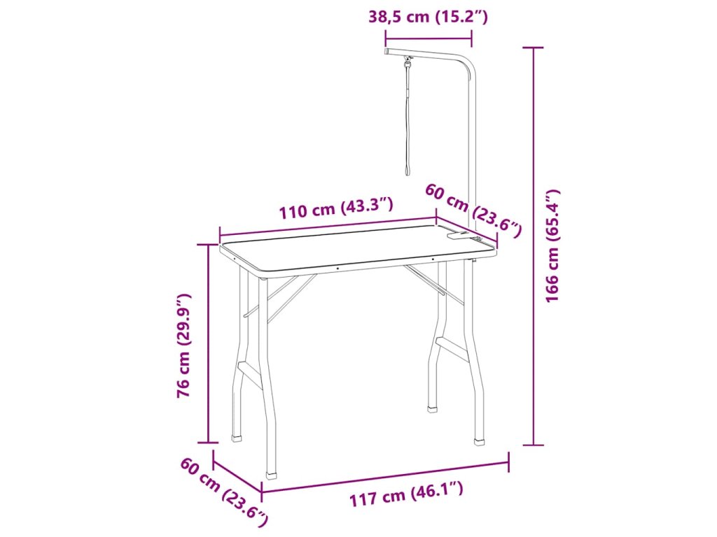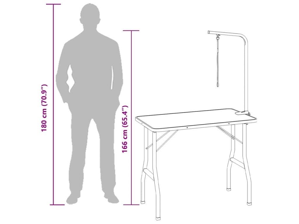 Stůl pro stříhání domácích mazlíčků podepírají ocelové nohy, takže je stabilní a robustní. Vaši miláčci mohou pohodlně stát na velké protiskluzové stolní desce. Zastřihovací rameno z nerezové oceli je výškově nastavitelné, dá se tedy přizpůsobit vám a velikosti vašeho domácího mazlíčka. Stůl je skládací, což je ideální pro mobilní psí kadeřníky i pro domácí použití, protože se snadno převáží a skladuje. Zaoblené rohy stolu navíc chrání před zraněním.