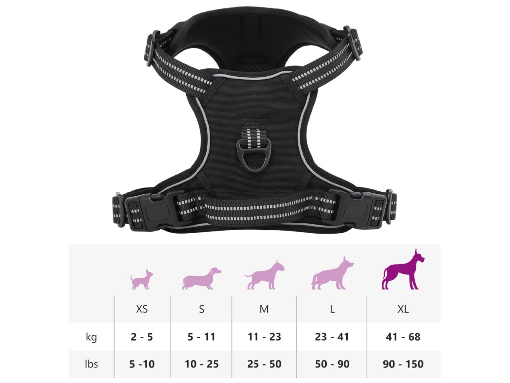 Postroj pro psy s reflexními popruhy nastavitelný černý XL 4013375