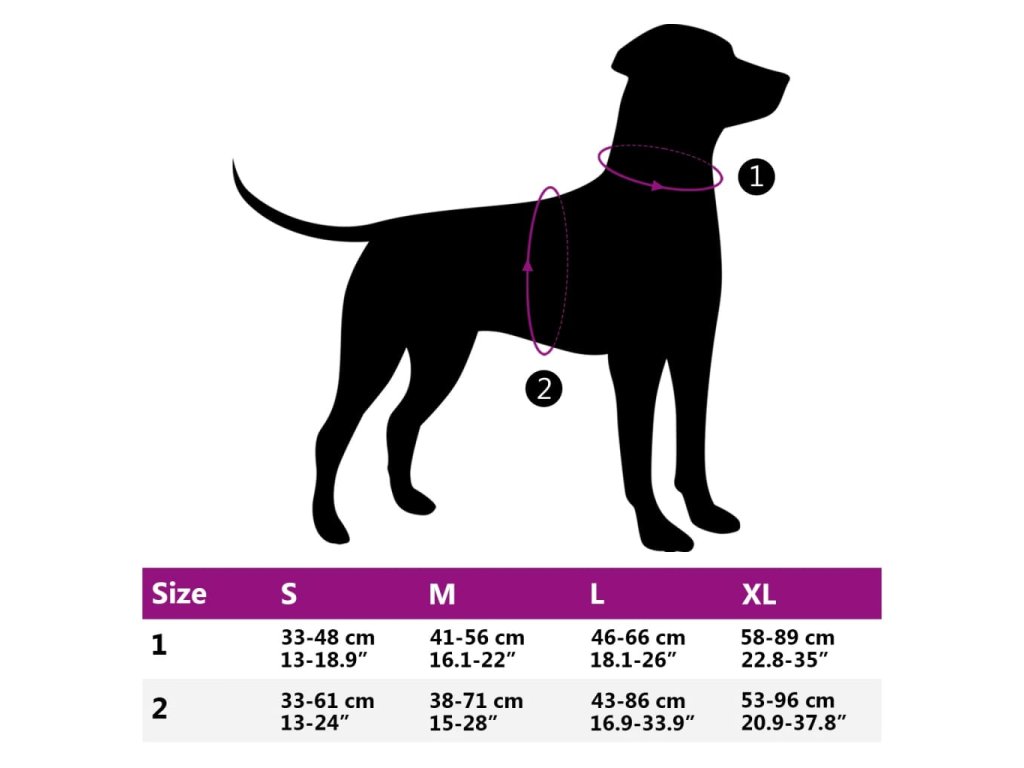 - Součástí dodávky je pouze jeden postroj pro psa. Vodítko pro psa není součástí dodávky.