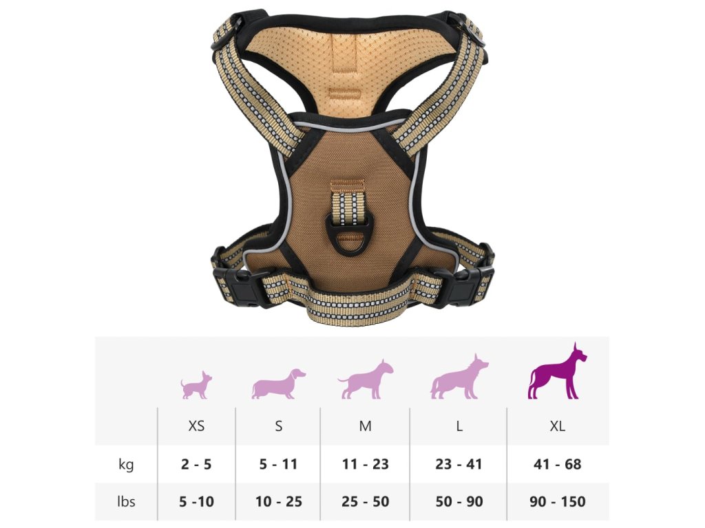 Postroj pro psy s reflexními popruhy nastavitelný hnědý XL 4013377