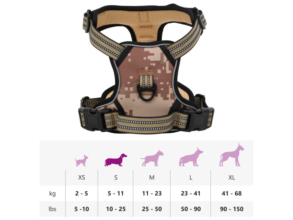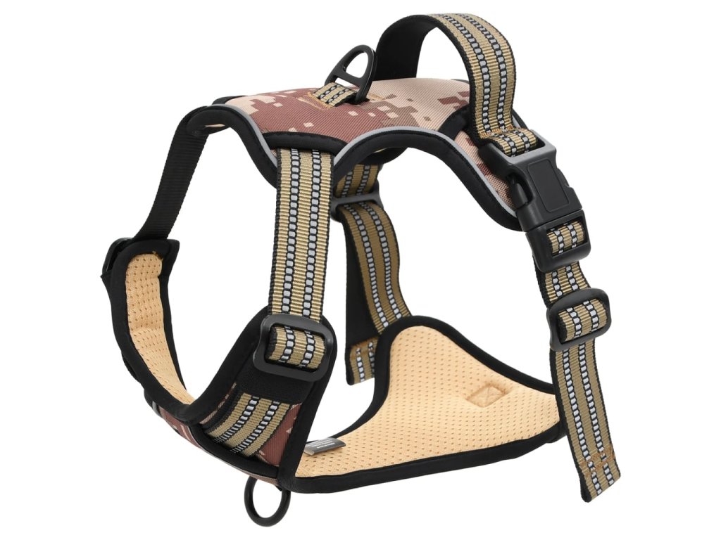 Postroj pro psy s reflexními popruhy nastavitelný maskáčový S 4013363