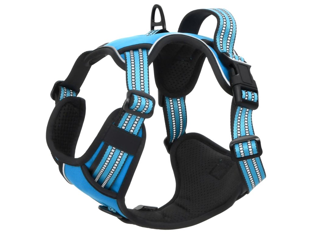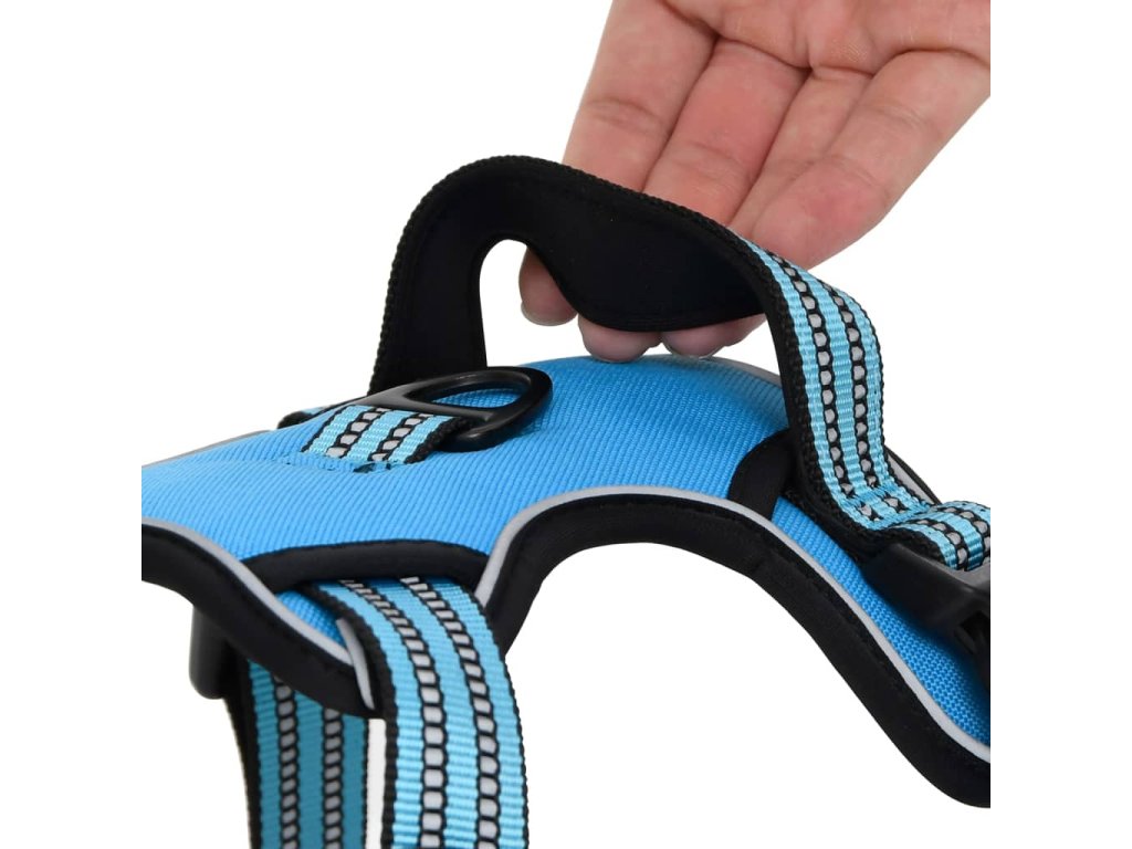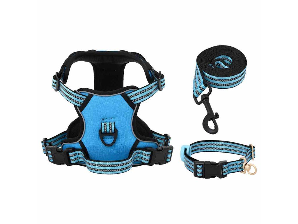 Postroj pro psy s vodítkem a obojkem nastavitelný modrý L 4013391