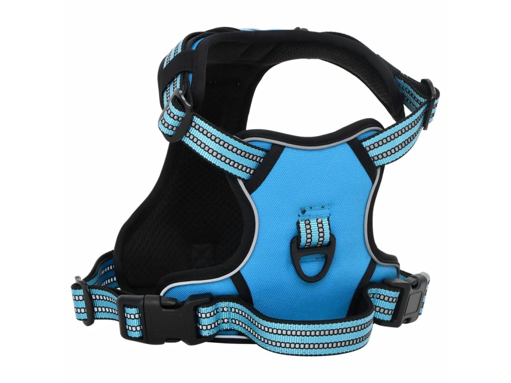 - Reflexní proužky pro dobrou viditelnost: Tento postroj pro psy má na povrchu reflexní proužky, které zajišťují bezpečnou procházku ve dne i v noci.