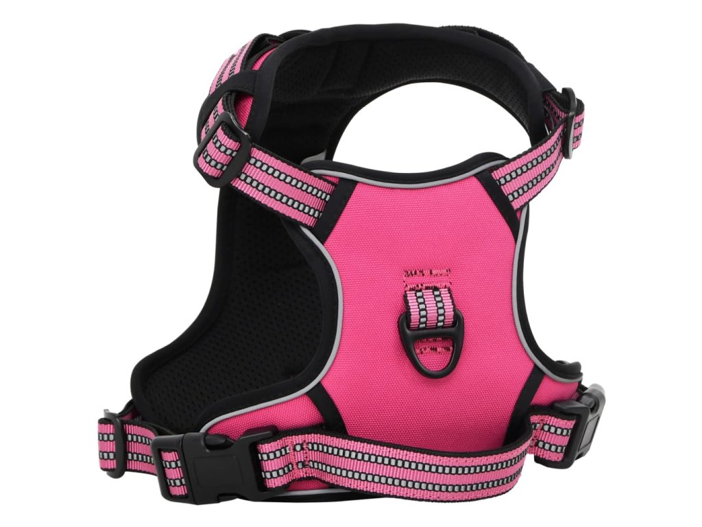 Postroj pro psy s vodítkem a obojkem nastavitelný růžový M 4013389