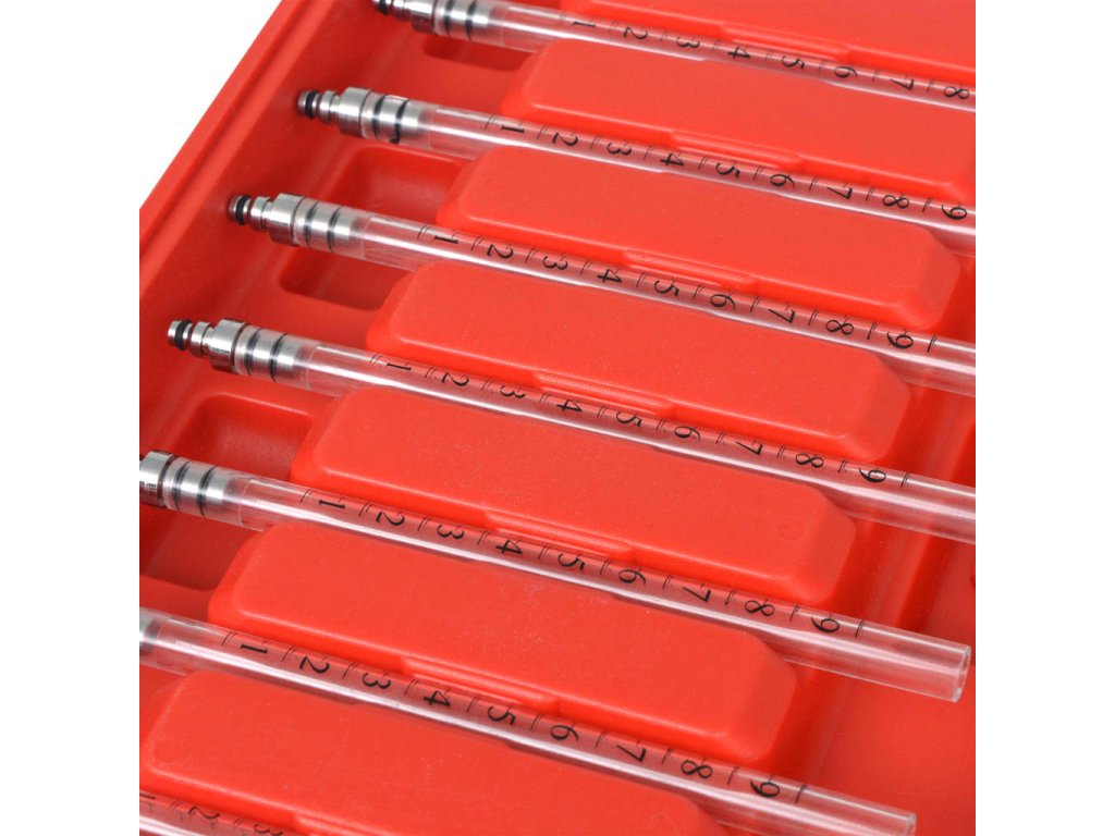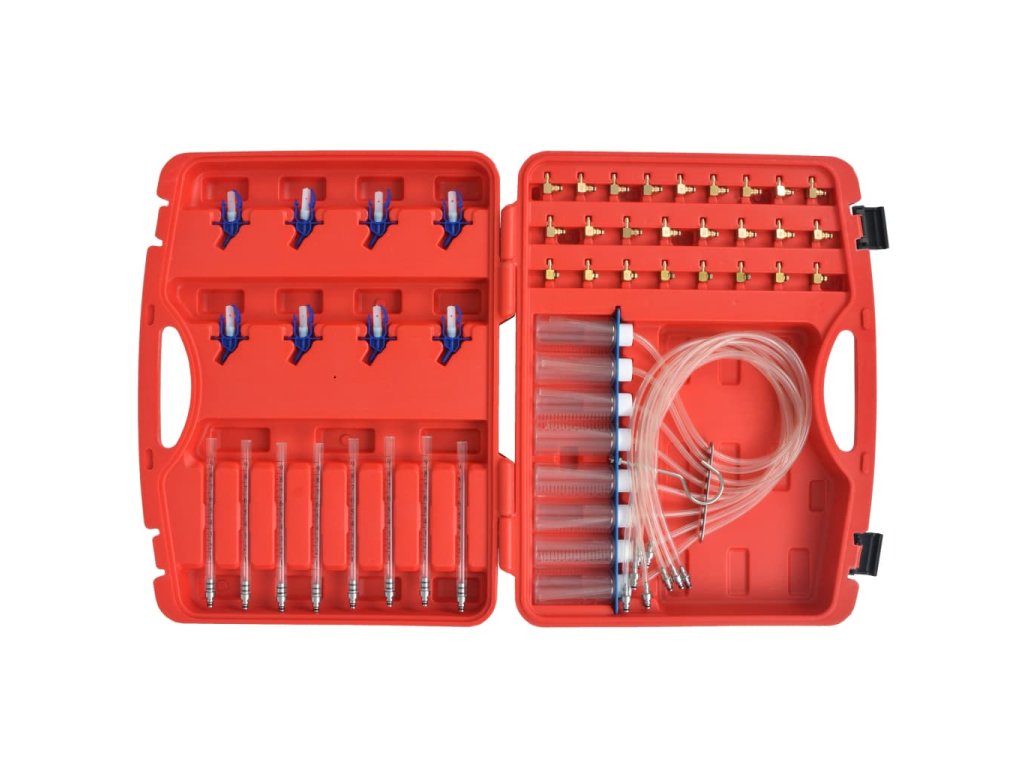 Sada obsahuje celou řadu adaptérů, které sedí na vstřikovače Bosch, Delphi a Denso, takže se hodí pro většinu naftových vozidel s motory typu common rail. Všechny díly jsou přehledně uloženy v pouzdře z foukaného plastu, jejich skladování i přeprava jsou tedy velmi jednoduché.