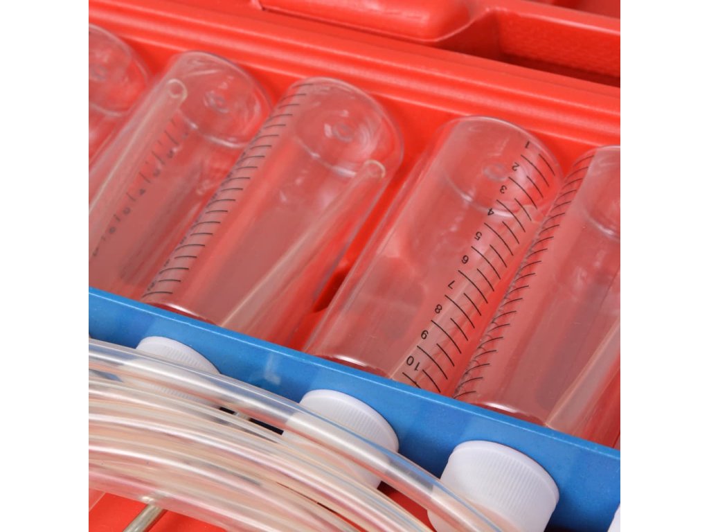 Náš průtokoměr s adaptéry je určen k měření zpětného toku paliva v naftových vozidlech až s 8 válci a se systémem vstřikování typu common rail a pomůže vám zjistit, zda je některý ze vstřikovačů poškozený.