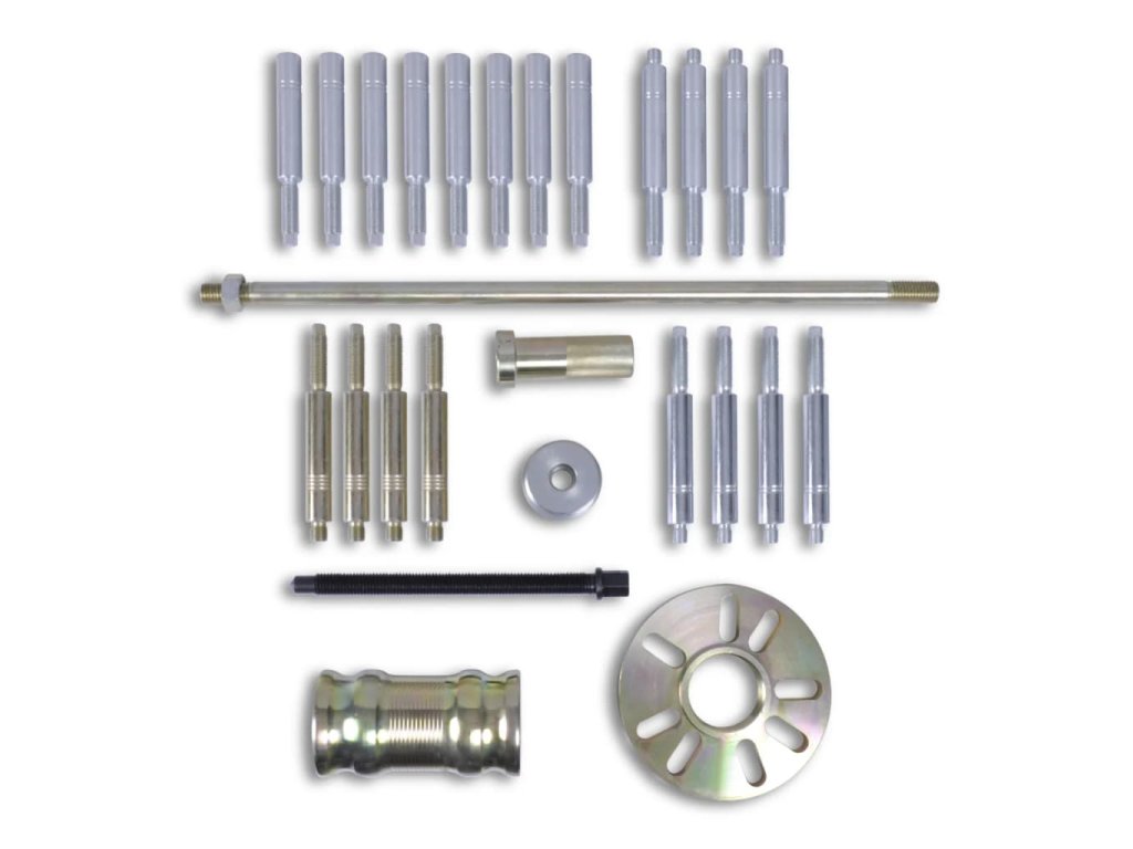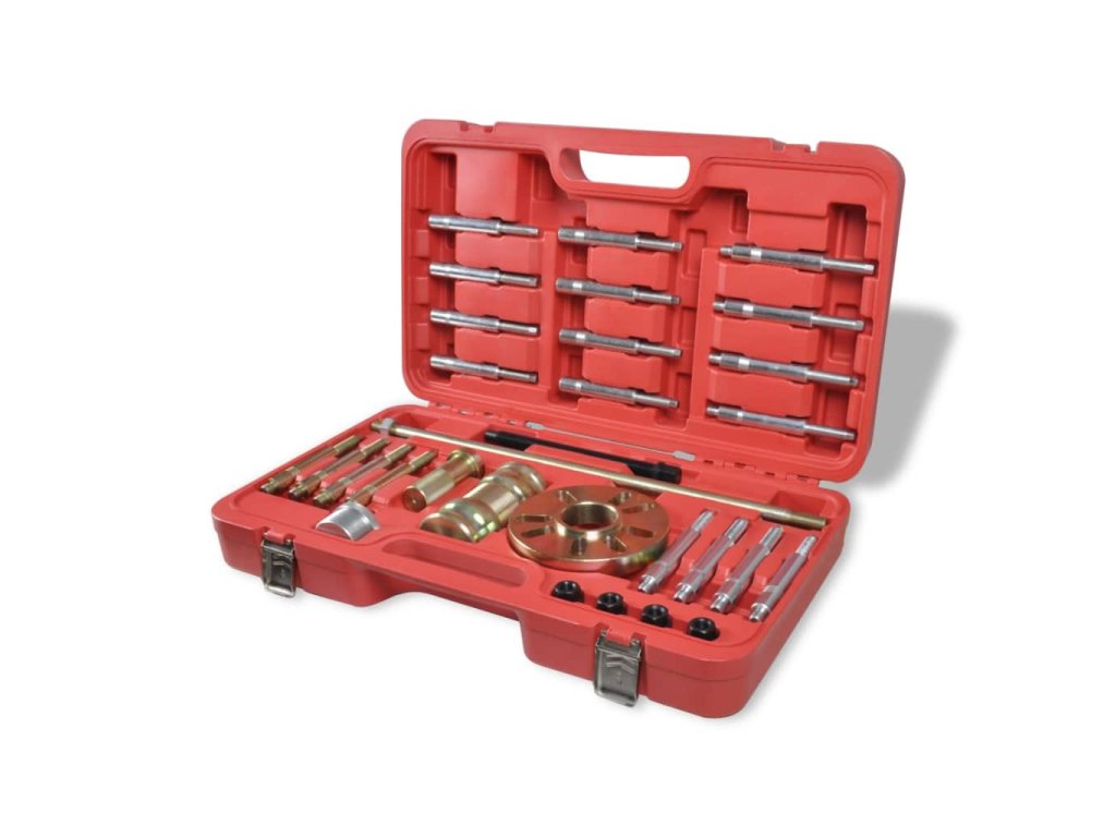 Tento set stahováků nábojů kol je velmi odolný. Obsahuje 30 dílů pro odšroubování těžko odstranitelných závrtných šroubů z nábojů a brzdových bubnů na osobních autech a lehkých užitkových vozidel.
