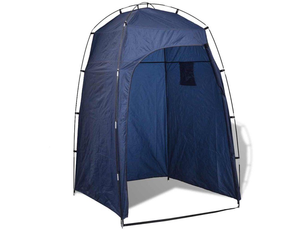 Tento stan na převlékání podepírá tyč ze sklolaminátu, takže je odolný, stabilní a praktický. Tento WC stan má krytou střechu pro větší soukromí, když se sprchujete nebo převlékáte. Jeho velký, zipem opatřený vchod umožňuje pohodlný vstup. Sprchový stan má uvnitř dvě úložné přihrádky, do kterých si můžete odložit šampón, sprchový gel a další věci. Jelikož stan nemá podlážku, budete ho moci udržovat uvnitř snadněji čistý.