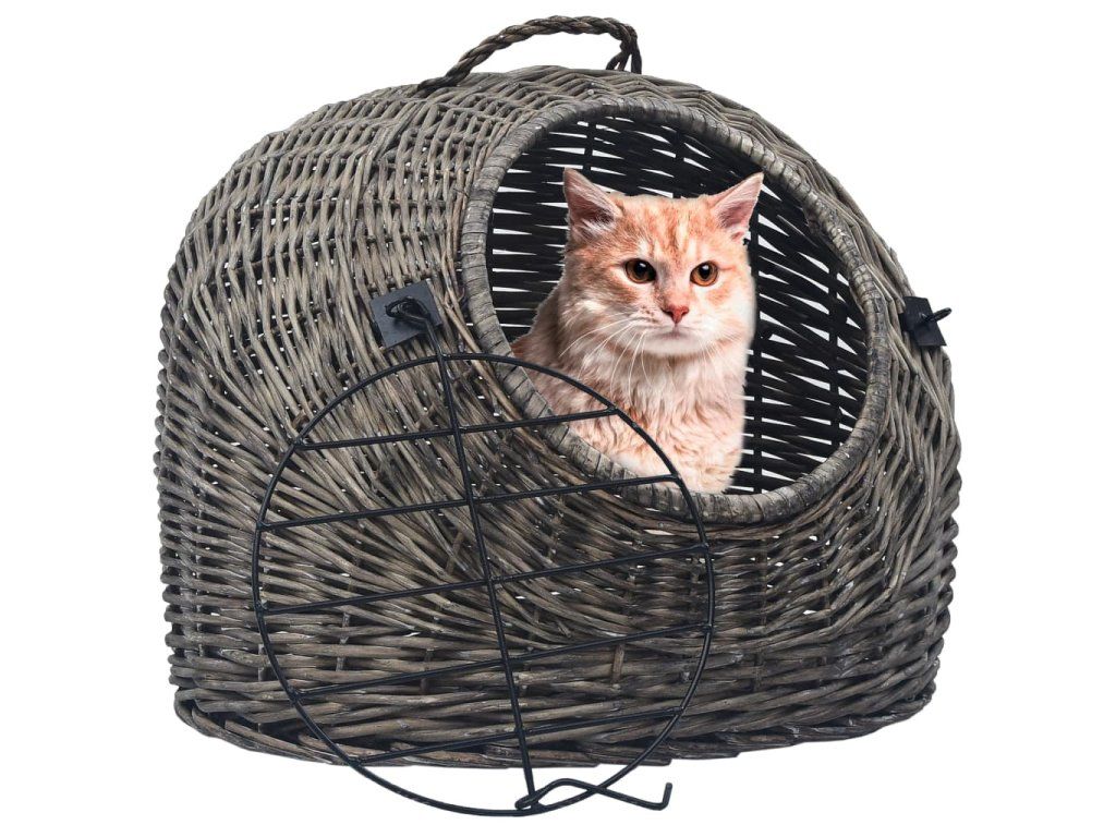 Přepravka pro kočku šedá 60 x 45 x 45 cm přírodní vrba 170906