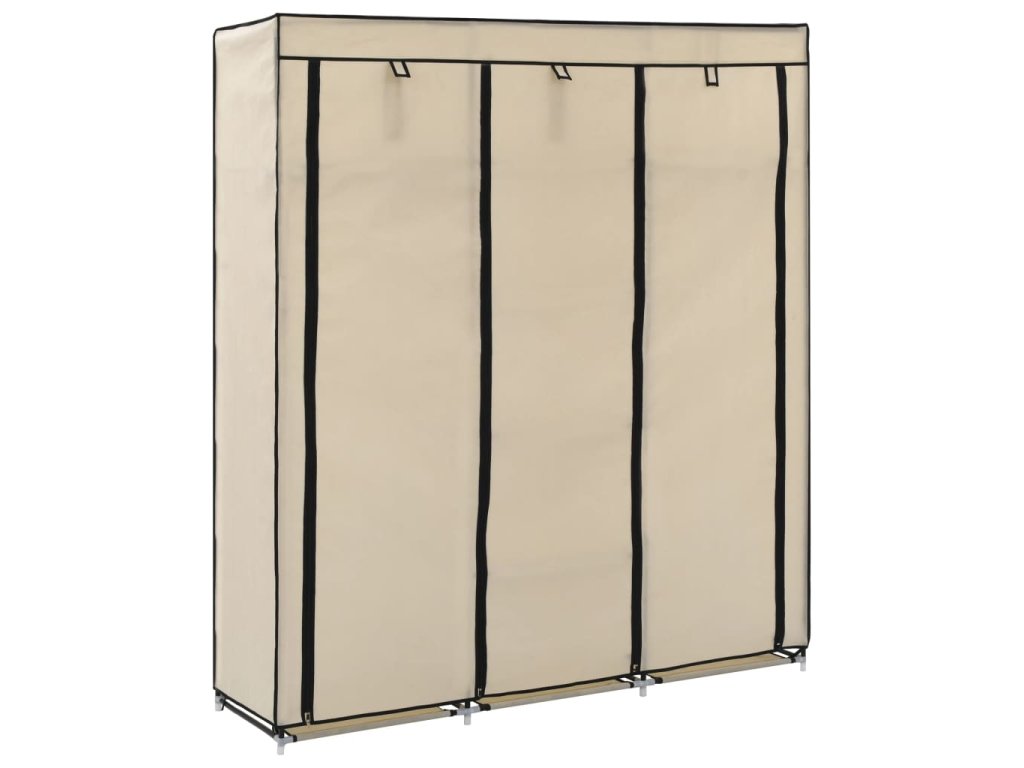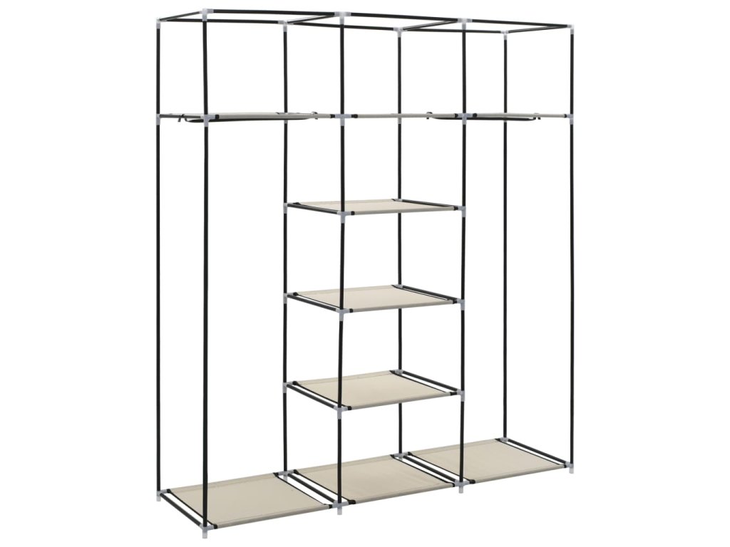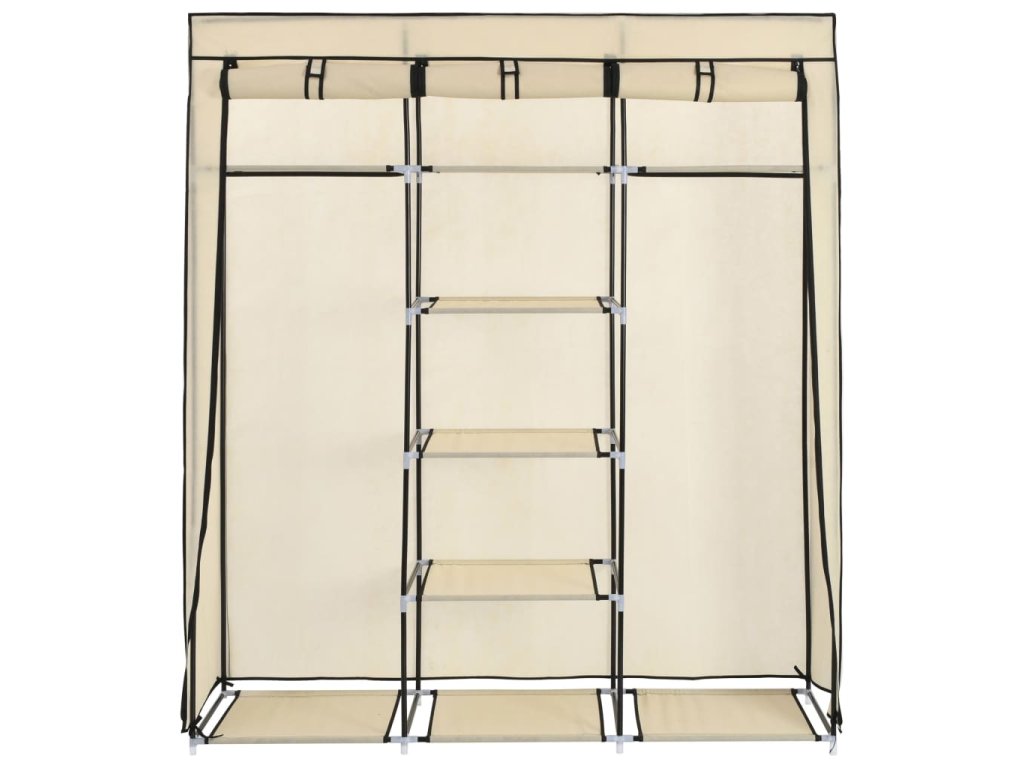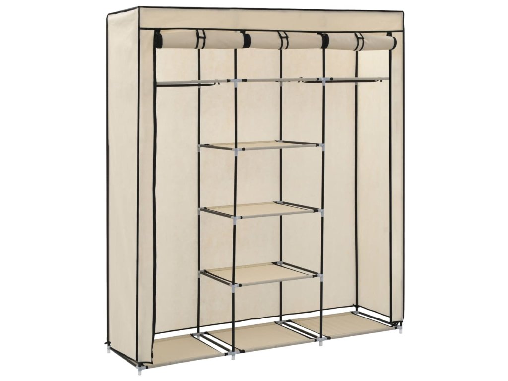 Šatní skříň s přihrádkami a tyčemi krémová 150x45x175 cm textil 282455