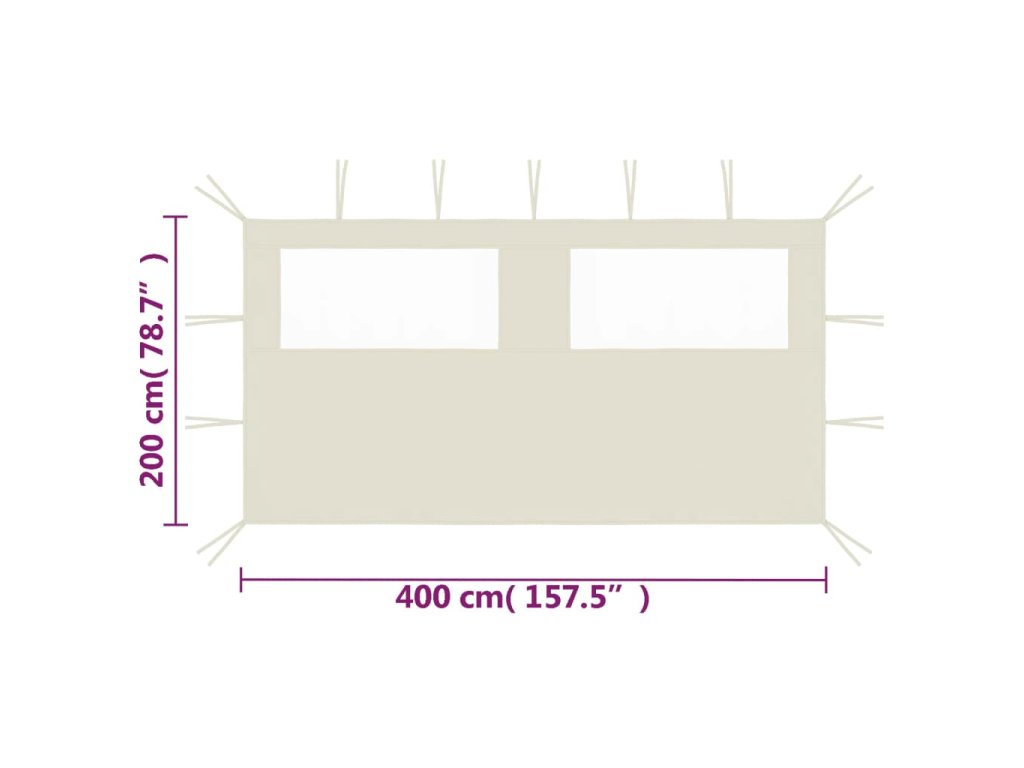 Boční stěna k party stanu s okny 4 x 2 m krémová 3070421