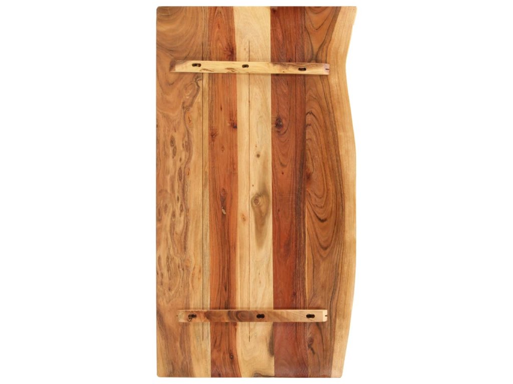 Koupelnový pult je vyrobený z masivní akácie, což je tropické tvrdé dřevo, které je husté a odolné a má dlouhou životnost. Masivní akáciové dřevo bylo vyleštěné, natřené a nalakované, takže je dobře zapečetěné, a tudíž chráněné před vlhkostí. Deska je zhotovená z kmene stromu a kopíruje jeho přírodní hrany, takže do vašeho bydlení vnese krástu přírodního dřeva.