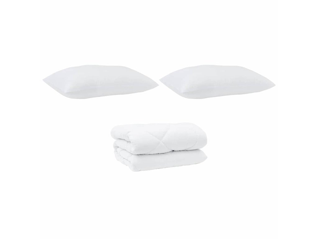 - Pečlivě zpracované komponenty Set obsahuje přikrývku a dva polštáře, každý naplněný polyesterovým vláknem. Tento lehký, ale hřejivý materiál tě zahřeje během celé noci. Polštáře, prošívané pro texturu a teplo, zvyšují pohodlí, takže tvoje postel se promění v útulnou svatyni.