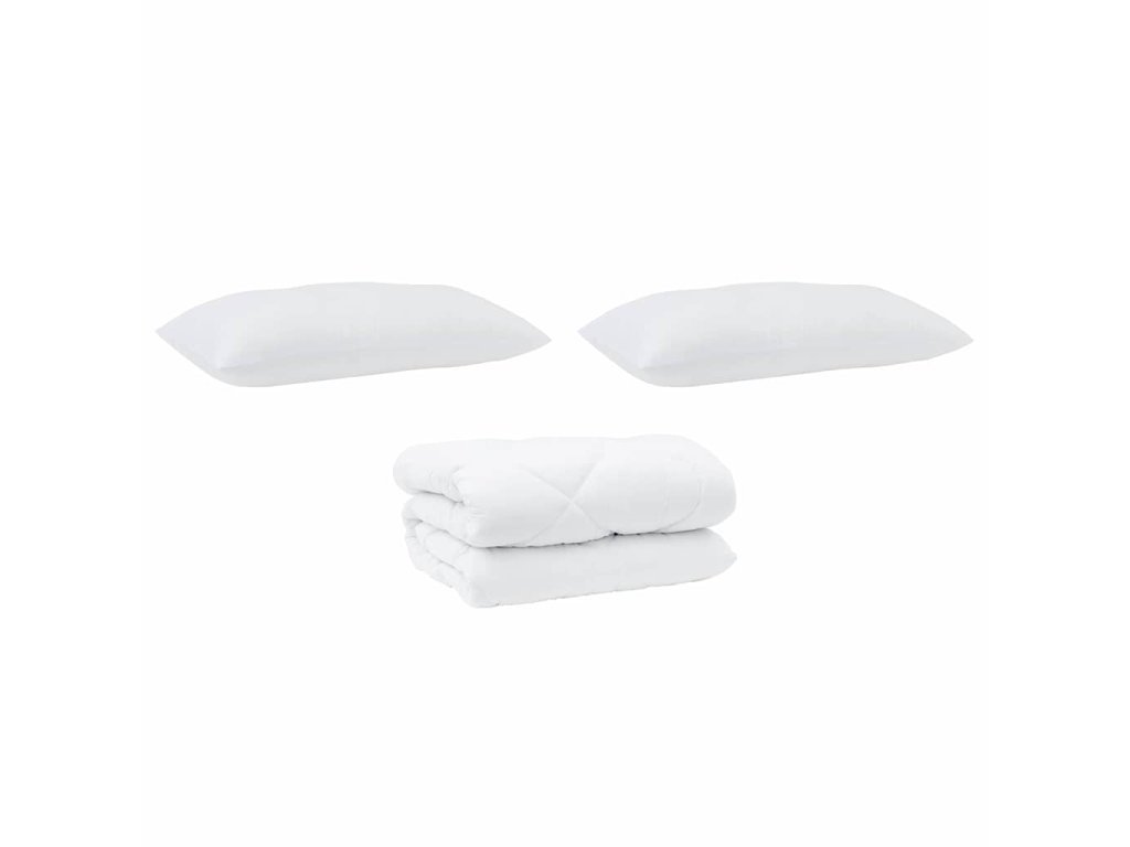 - Pečlivě zpracované komponenty Set obsahuje přikrývku a dva polštáře, každý naplněný polyesterovým vláknem. Tento lehký, ale hřejivý materiál tě zahřeje během celé noci. Polštáře, prošívané pro texturu a teplo, zvyšují pohodlí, takže tvoje postel se promění v útulnou svatyni.