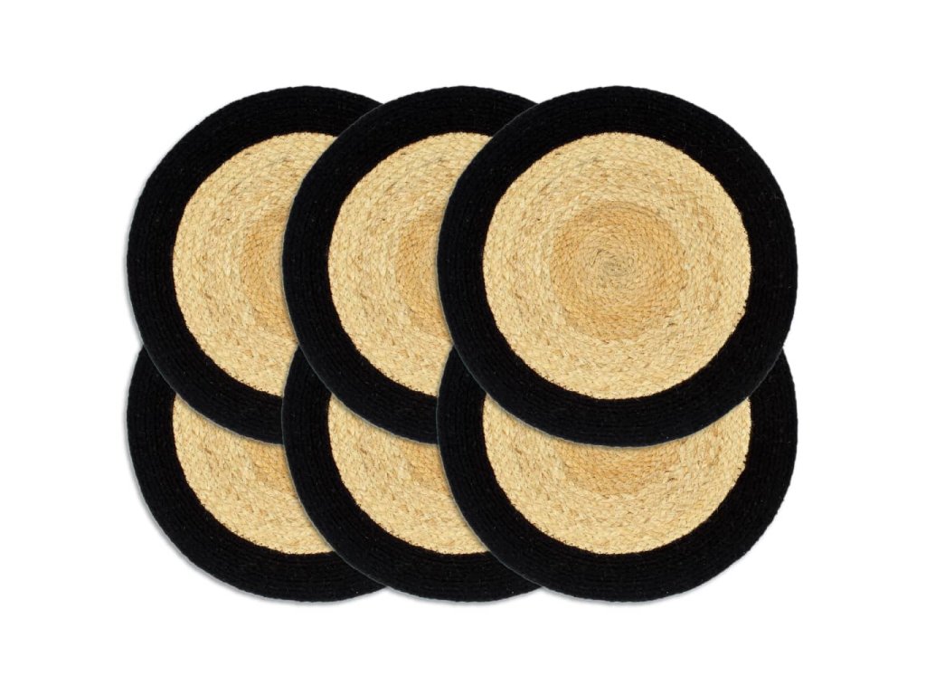 Prostírání 6 ks přírodní a černé 38 cm juta a bavlna 133857