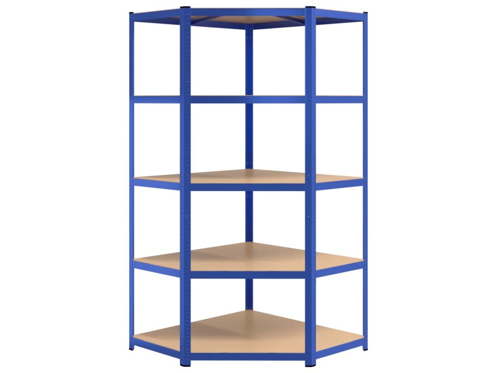 5patrový rohový regál modrý ocel a kompozitní dřevo 152889