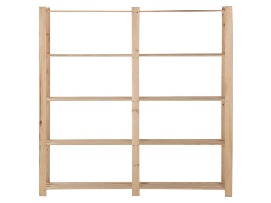 Úložné police z borového dřeva, jsou extrémně odolné! Můžete jim ponechat jejich přirozenou barvu nebo přidat vrstvu nátěru či jiné povrchové úpravy ve vaší oblíbené barvě. Tento regál s pětiúrovňovým provedením poskytuje dostatek prostoru pro přehledné uspořádání všech předmětů.
