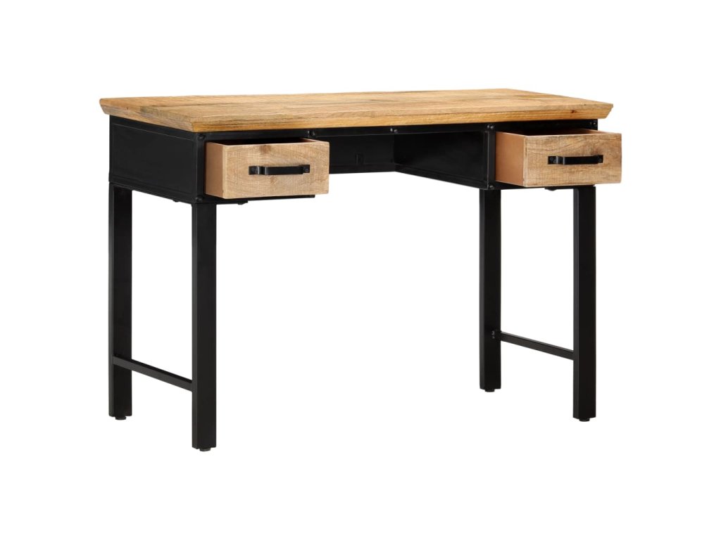 Tento psací stůl je vyrobený z masivního mangovníkového dřeva, je tedy mimořádně stabilní a odolný. Krásná kresba tvrdého dřeva propůjčuje každému kusu nábytku jeho jedinečný a od všech ostatních lehce odlišný vzhled. Tento počítačový stůl je navíc vybavený 2 zásuvkami a poskytne vám dostatek úložného prostoru pro nejrůznější drobnosti. Náš studijní stůl se snadno sestavuje.