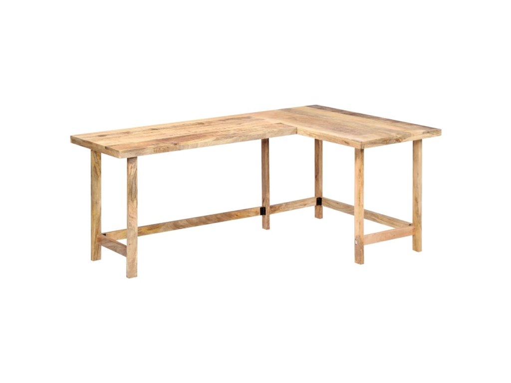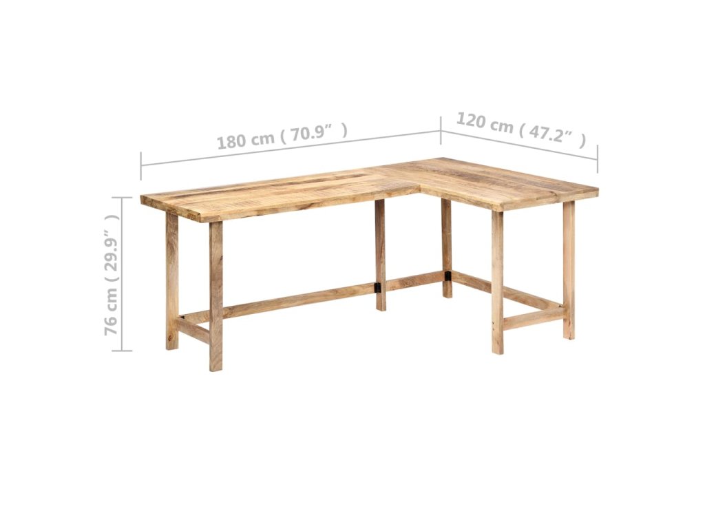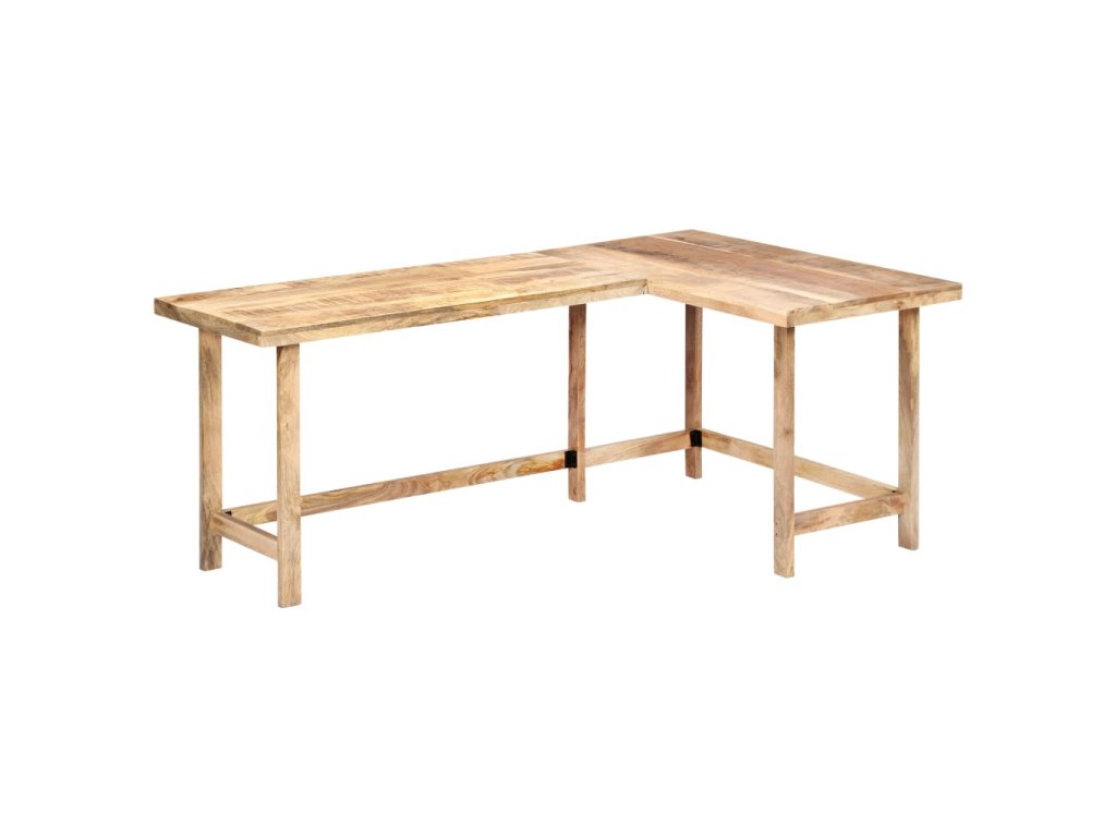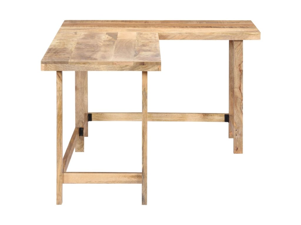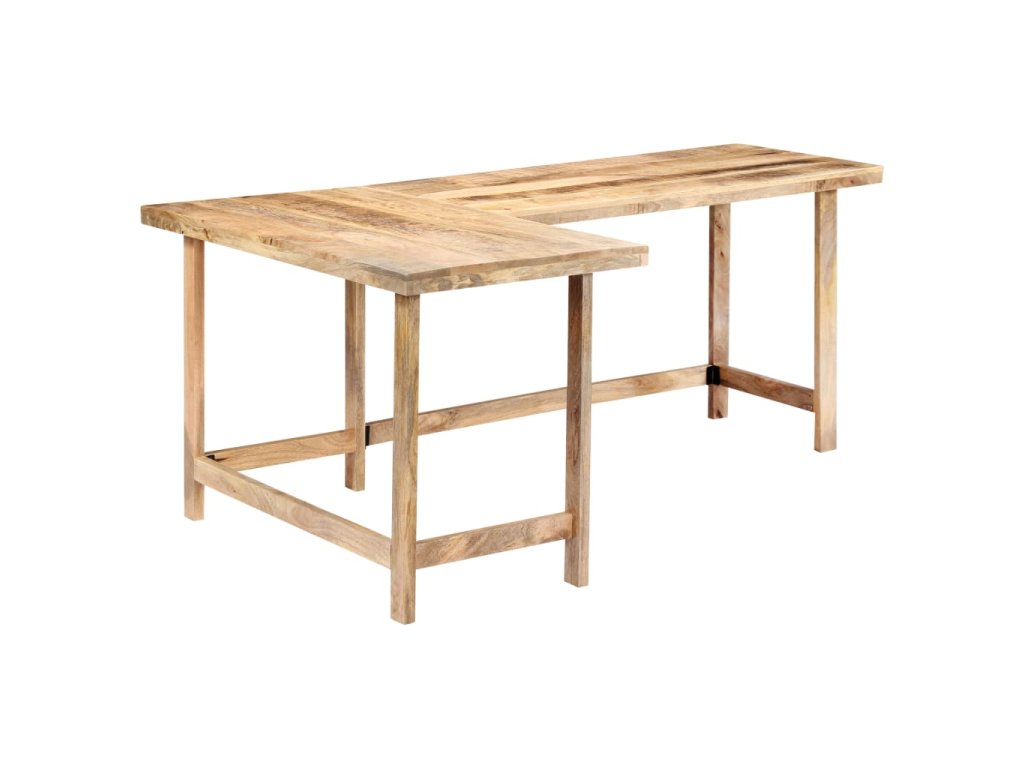 Psací stůl je vyroben z masivního mangovníku, což je tvrdé dřevo s hustou kresbou. Hrubé mangovníkové dřevo se pyšní nejen svou schopností unést vysokou zátěž, ale také obstojně odolává opotřebení a působení času. Mimořádná ruční práce spolu s elegantní kresbou dřeva činí každý kus nábytku zcela jedinečným a lehce odlišným od ostatních. Tento robustní stůl je navíc zajímavý svým designem ve tvaru písmene L a lze jej umístit na levou i na pravou stranu.