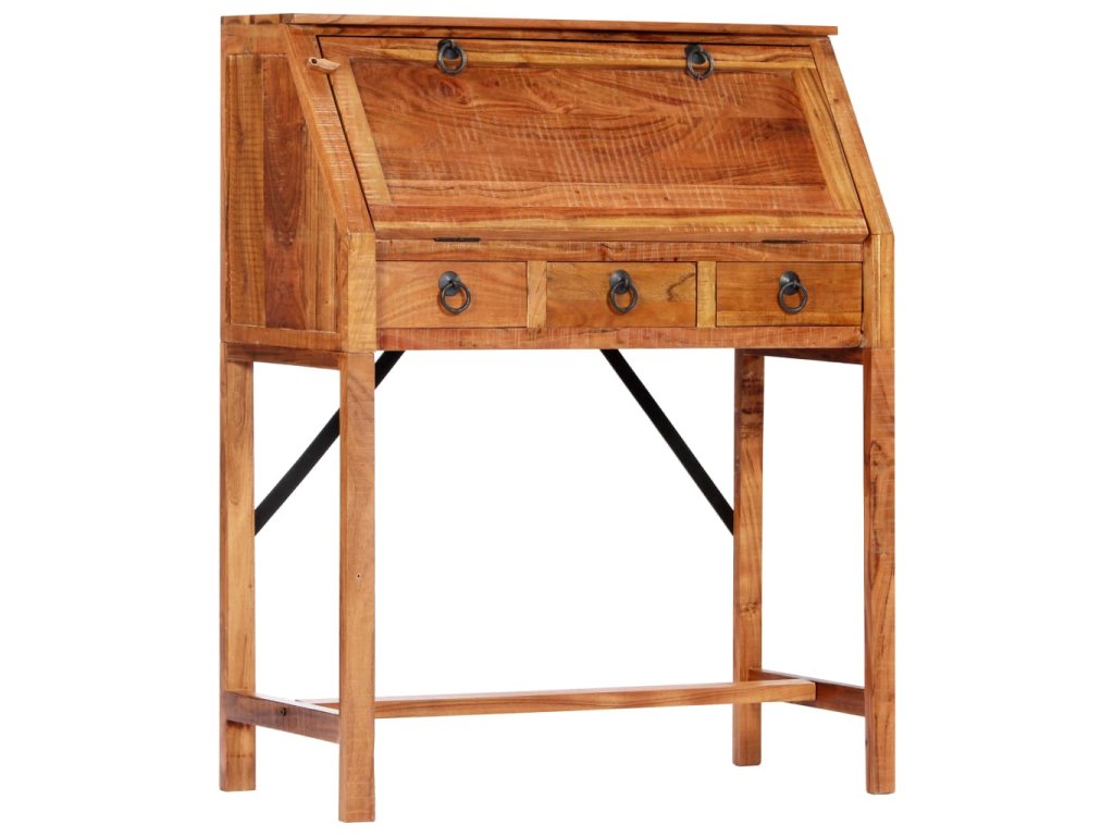 Výklopná deska tohoto psacího stolu vám poslouží jako prostorná plocha pro psaní a uvnitř také najdete zásuvku a prostor pro knihy. Čtyři zásuvky poskytují dostatečný úložný prostor pro různé drobné předměty, které tak můžete mít vždy pěkně uspořádané a po ruce. Stůl je vyroben z masivního akáciového dřeva, což je krásná a odolná tvrdá dřevina. Prvotřídní ruční práce stolu dodává neobyčejný starožitný vzhled. Každý krok výrobního procesu je proveden s tou největší pečlivostí, ať už se jedná o leštění, natírání či lakování. Stůl je již sestaven; jeho montáž není nutná.