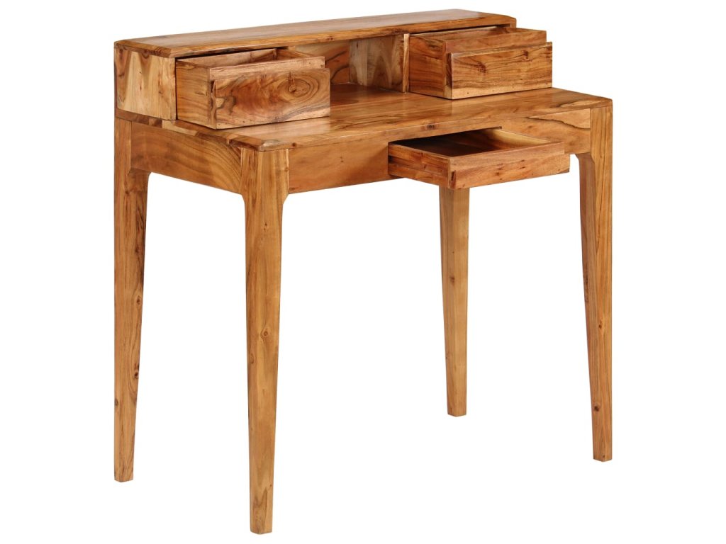 Psací stůl je vyroben z krásně vyleštěného, natřeného a nalakovaného masivního akáciového dřeva, které tomuto nábytku propůjčuje rafinovaný vzhled. Stůl je celý ručně vyrobený a nádherná kresba dřeva činí každý kus nábytku zcela jedinečným a lehce odlišným od ostatních. Tento stůl na počítač disponuje 3 zásuvkami na psací potřeby a 1 přihrádkou, které poskytují spoustu prostoru k uchovávání a třídění vašich souborů, papírů, dokumentů a dalších osobních předmětů. Montáž je snadná.