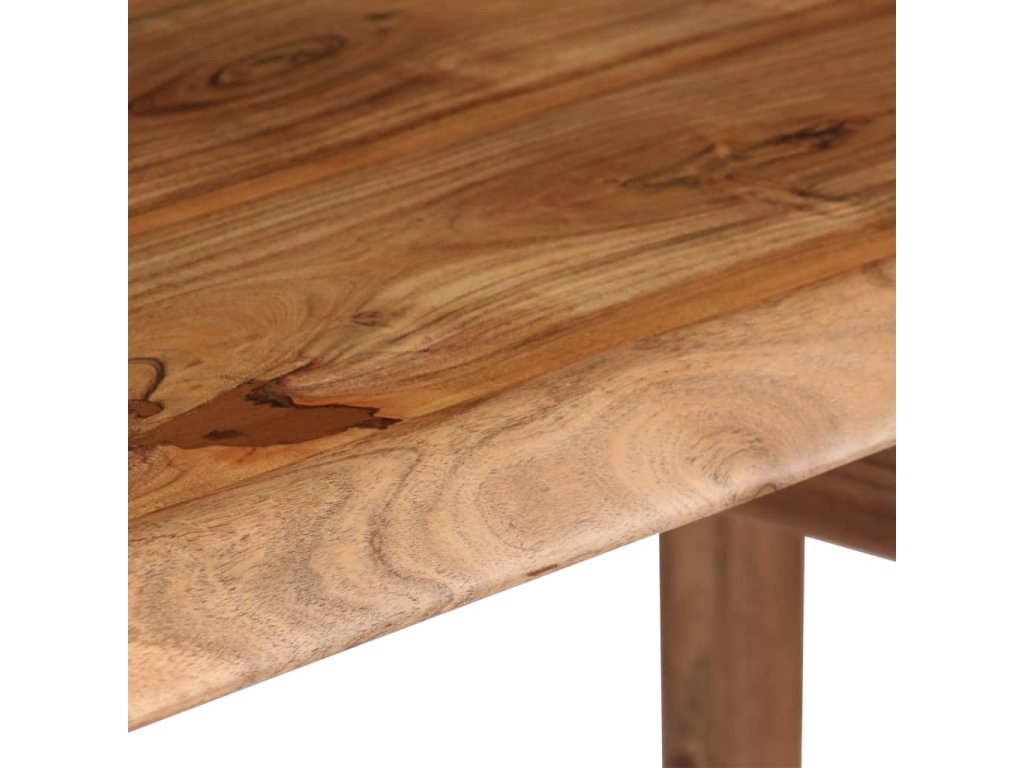 Stůl je zhotoven z masivního akáciového dřeva, díky čemuž je velmi odolný a stabilní a vnese do vaší domácnosti dotek rustikálního kouzla. Disponuje jedinečným designem, kde horní deska částečně překrývá zásuvku, což podtrhuje jeho přírodní vzhled a vintage styl. Zásuvka poskytuje spoustu místa, kam si můžete přehledně uložit nejrůznější menší předměty. Každá fáze výrobního procesu je prováděna s největší pečlivostí, ať už se jedná o leštění anebo lakování. Montáž je snadná.