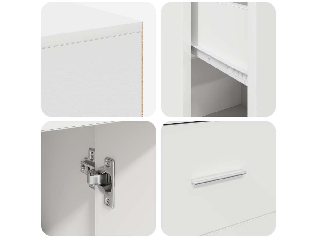 Inženýrské dřevo: Stůl je vyroben z inženýrského dřeva, které je pevné a odolné. Díky hladkému povrchu je skvélé pro práci a zajišťuje dlouhou životnost. Odolává každodennímu používání a deformacím, proto je skvělou volbou do rušných kancelářských prostředí. Kompletní úložné řešení: Tento stůl má police a dveře, což nabízí dostatek úložného prostoru na věci. Dveře zajišťují soukromí a ukládají dokumenty, takže zůstává hezky uklizeno. To je ideální pro ty, kteří chtějí mít úložné prostory bez ztráty stylu. Jednoduchý moderní styl: Moderní design s čistými liniemi a funkčním rozložením. Podporuje úhlednost a přizpůsobí se různým interiérům. Jeho elegance se hodí do všeho, od minimalistického studia po hektickou kancelář. Ideální pro kancelářské použití: Perfektní pro malé až střední prostory, může sloužit jako hlavní pracovní místo nebo jako doplněk. Jeho velikost využívá rohy místnosti, čímž zvyšuje efektivnost rozložení. Bezproblémová údržba: Udržování stolu je snadné. Stačí ho otřít vlhkým hadříkem, aby zůstal stále hezký a profesionální. Tento jednoduchý přístup zajišťuje dlouhou životnost a vizuální přitažlivost.- Barva: Bílá
