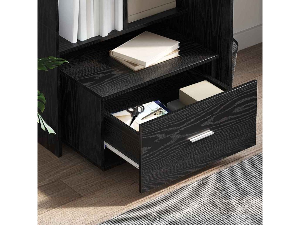 - Dostatek úložného prostoru S regály a zásuvkami z kompozitního dřeva, tenhle stůl nabízí spoustu úložných možností. Zásuvky a police jsou ideální na schování knih, psacích potřeb a dalších kancelářských drobností, což ti pomůže udržet pracovní prostor uklizený. Je natolik univerzální, že splní všechny tvoje úložné potřeby.