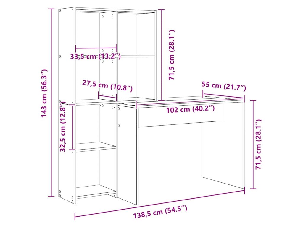 Stůl s policí dub sonoma 138.5 x 55 x 143 cm Kompozitní dřevo 3337251