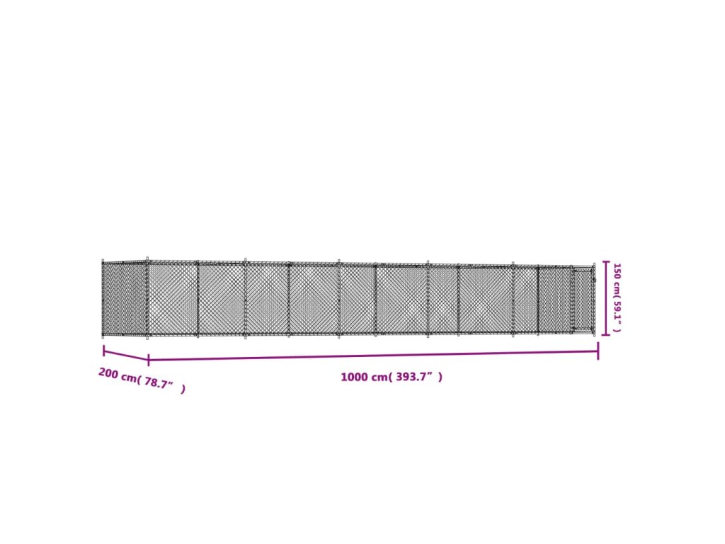 Klec pro psy s dvířky šedá 10 x 2 x 1,5 m pozinkovaná ocel 3209581