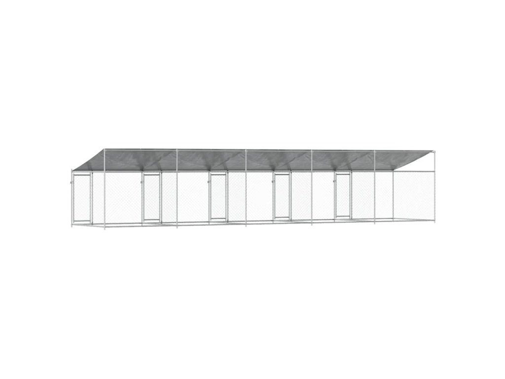 Klec pro psy se střechou a dvířky šedá 10x2x2m pozinkovaná ocel 3209566