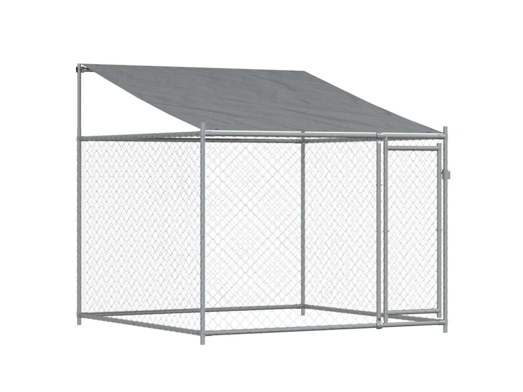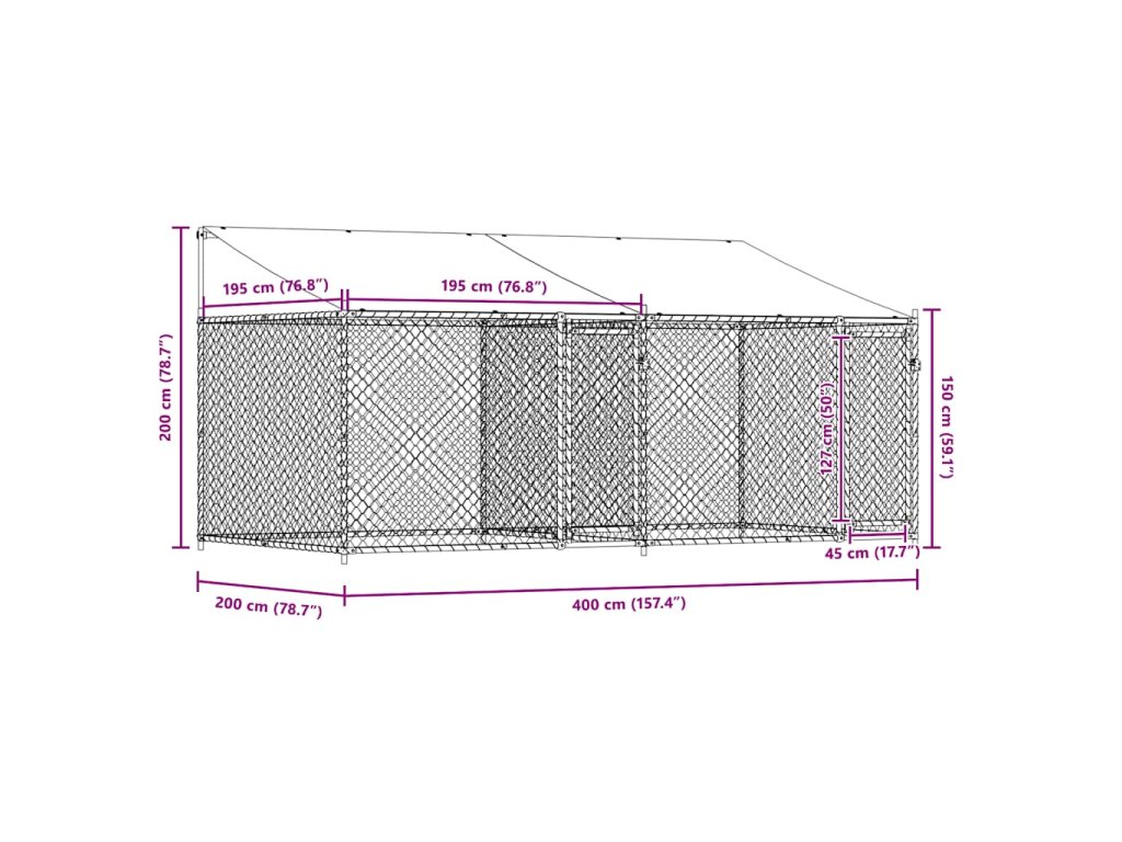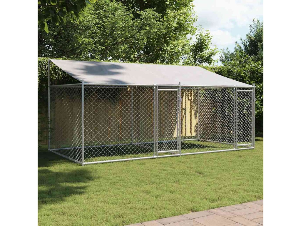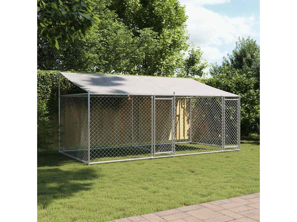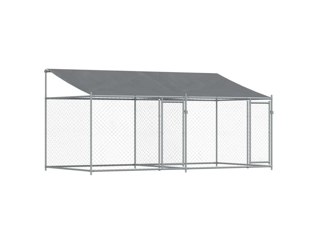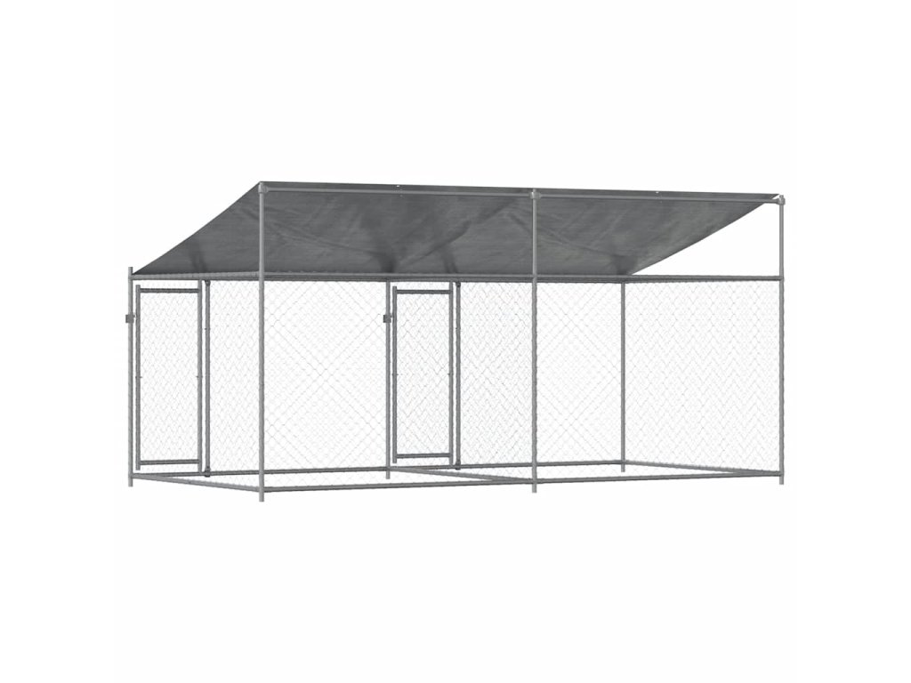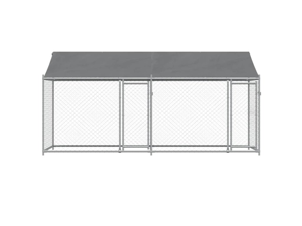 Klec pro psy se střechou a dvířky šedá 4x2x2 m pozinkovaná ocel 3209563
