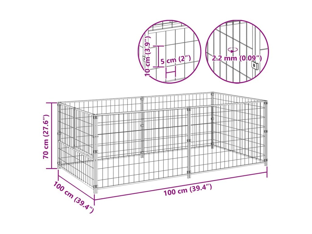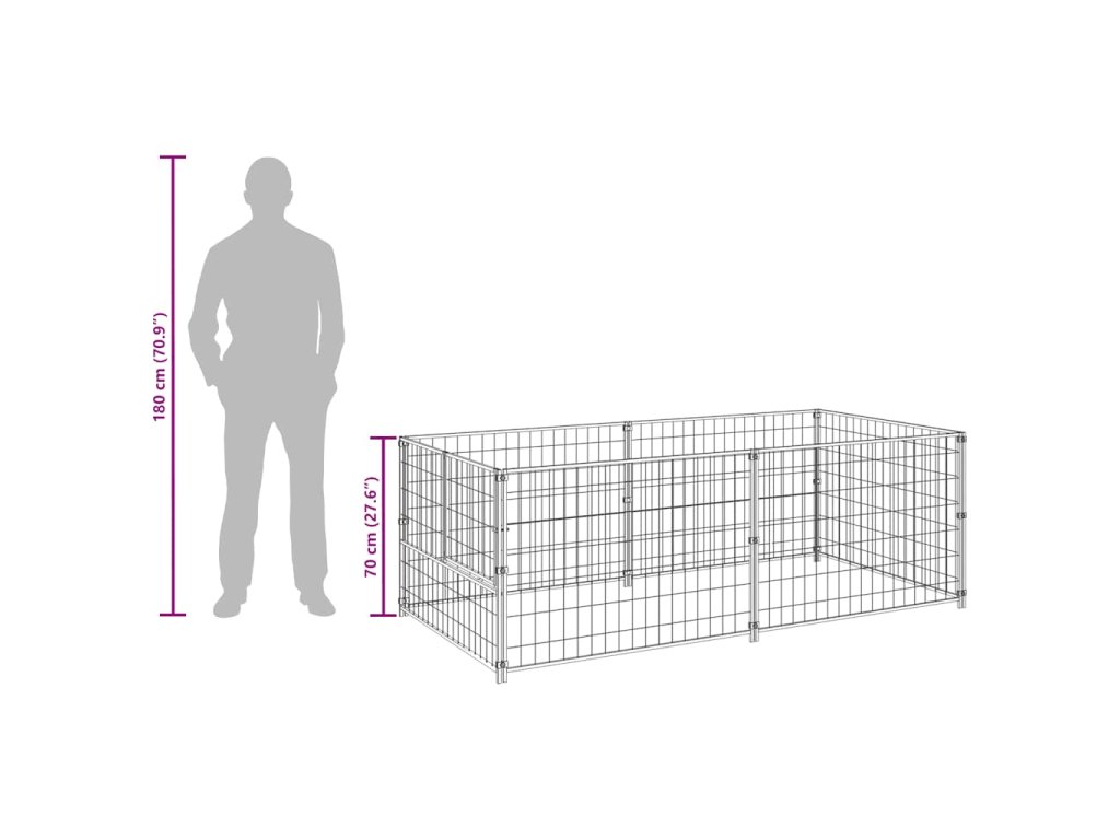Velká klec pro psy poskytuje spoustu prostoru pro pohyb psa. Stěny z ocelového pletiva pomáhají předcházet nečekaným nehodám a zároveň umožňují volné proudění vzduchu. Výběh má robustní ocelovou konstrukci, je proto odolný a má dlouhou životnost. Dveře jsou navíc opatřeny uzamykatelnou západkou, která zajišťuje větší bezpečnost a ochranu vašich psů.
