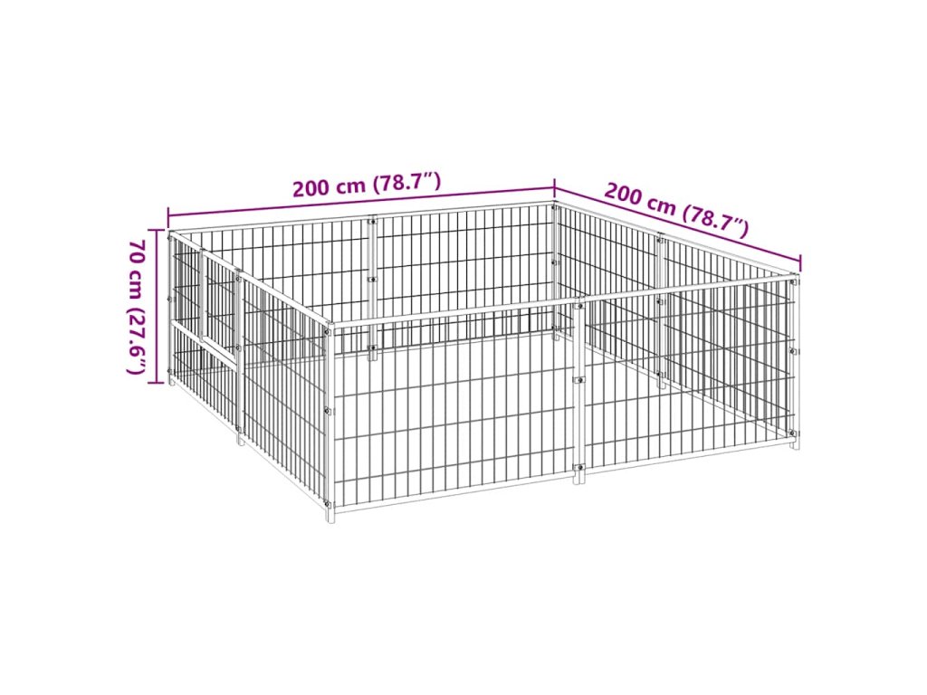 Psí kotec černý 4 m² ocel 3082109
