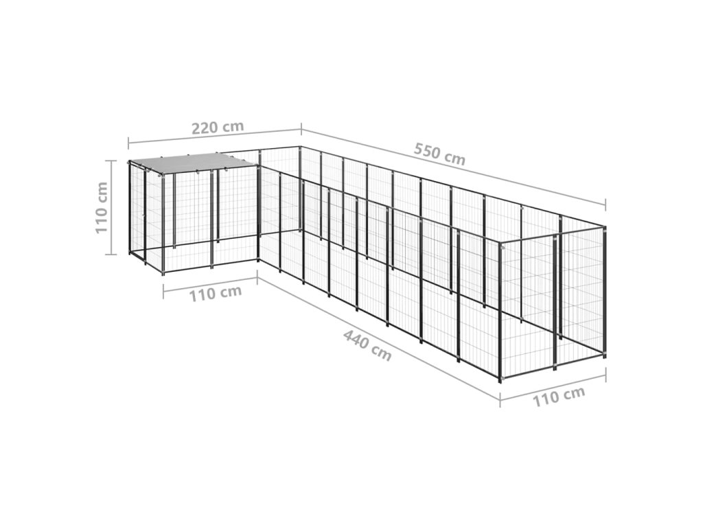 Psí kotec černý 7,26 m² ocel 3082237