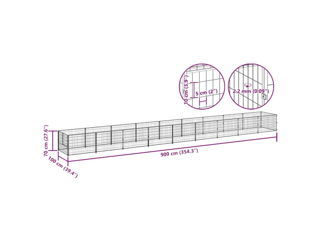 Psí kotec černý 9 m² ocel 3082099
