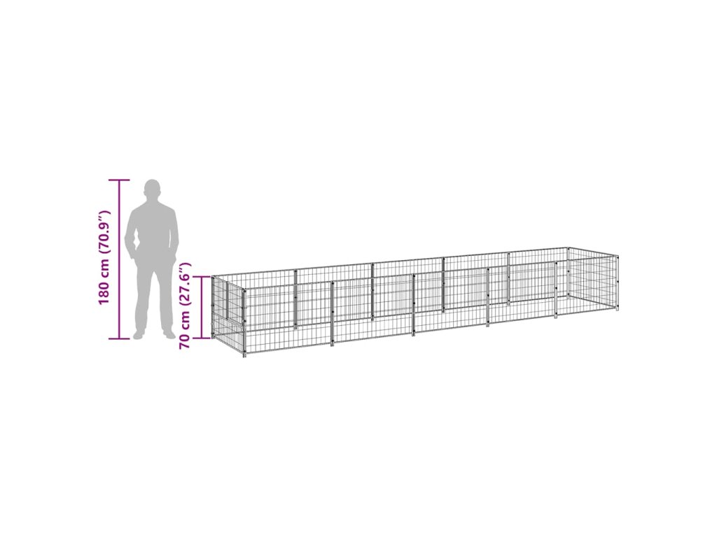 Venkovní psí kotec stříbrný 8 x 4 x 2 m pozinkovaná ocel 3190463