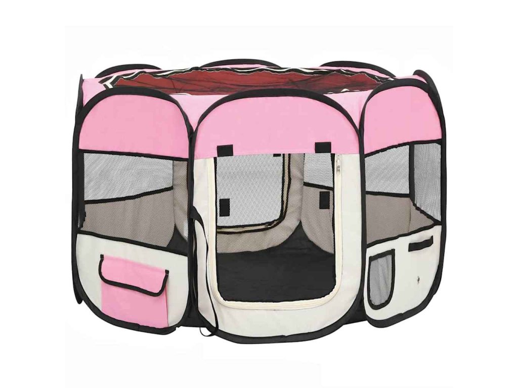 Skládací ohrádka pro psy s taškou růžová 90 x 90 x 58 cm 171009