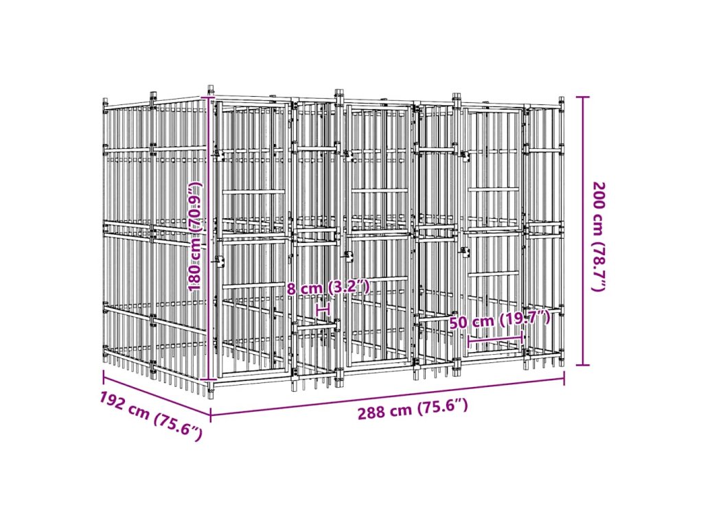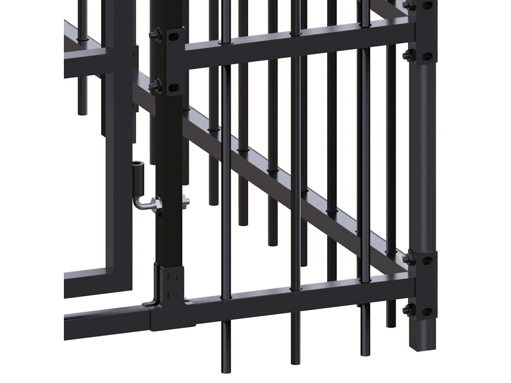 Psí kotec poskytne vašim psům spoustu prostoru k pohybu. Stěny z ocelových mříží předchází neplechám a neočekávaným nehodám a pouští dovnitř čerstvý vzduch. Vzhledem k jeho robustní a pevné konstrukci z práškově lakované oceli je kotec velmi odolný a vydrží vám sloužit po dlouhá léta. Dvířka s panty jsou opatřená uzamykatelnou západkou, aby vašim pejskům zaručila mimořádné bezpečí.