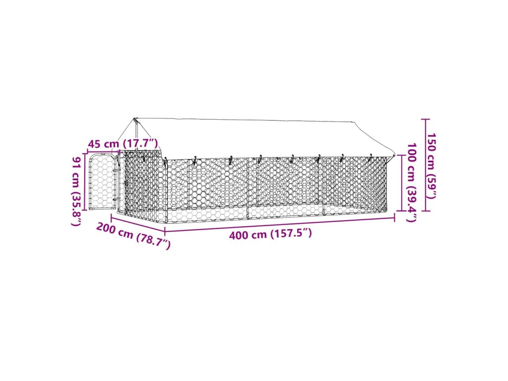 Venkovní psí kotec se střechou 400 x 200 x 150 cm 171499