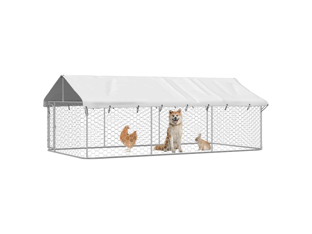 Velký psí kotec poskytne vašim psům spoustu prostoru k pohybu. Pletivo po celém obvodu zároveň zabrání neplechám a nehodám a umožní dostatečné větrání. Pevná konstrukce z vysoce odolné pozinkované oceli zaručuje, že toho kotec hodně vydrží a bude vám sloužit dlouhá léta. Součástí je rovněž střecha ze 100% polyethylenu, která je žáruvzdorná a odolná vůči UV záření a poskytuje ochranu před sluncem, deštěm, sněhem a dalšími klimatickými podmínkami. Dveře s panty lze zamknout na západku pro zvýšené bezpečí vašich psů.