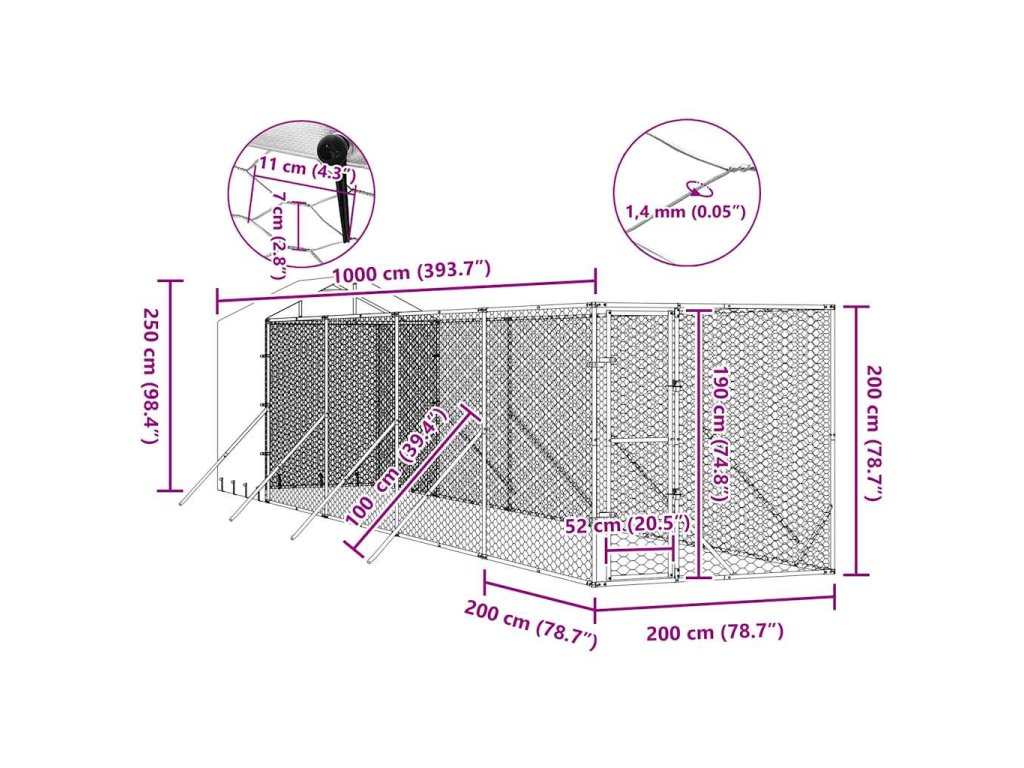 Venkovní psí kotec stříbrný 4 x 8 x 2 m pozinkovaná ocel 3190456