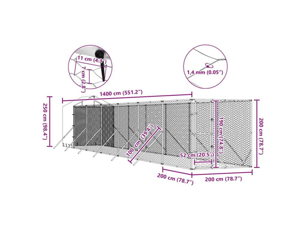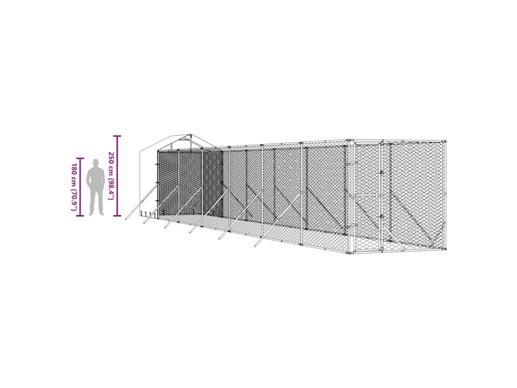 Venkovní psí kotec se střechou stříbrný 2 x 14 x 2,5 m ocel 3190477