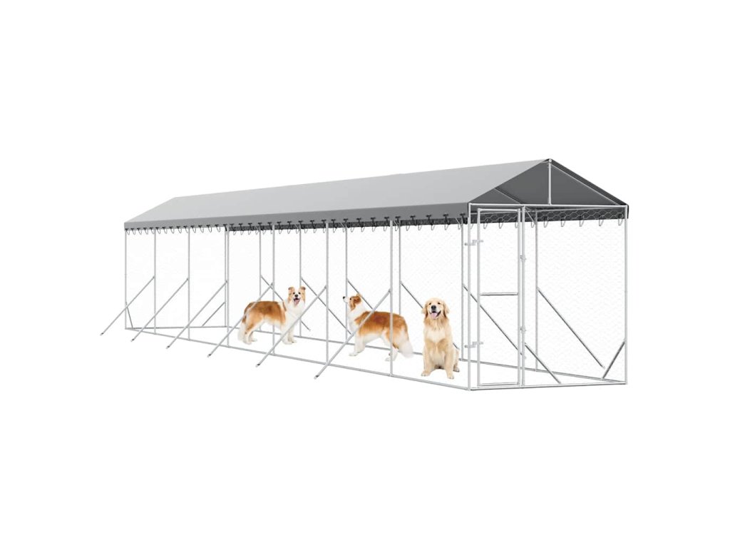 Venkovní psí kotec stříbrný 8 x 8 x 2 m pozinkovaná ocel 3190464