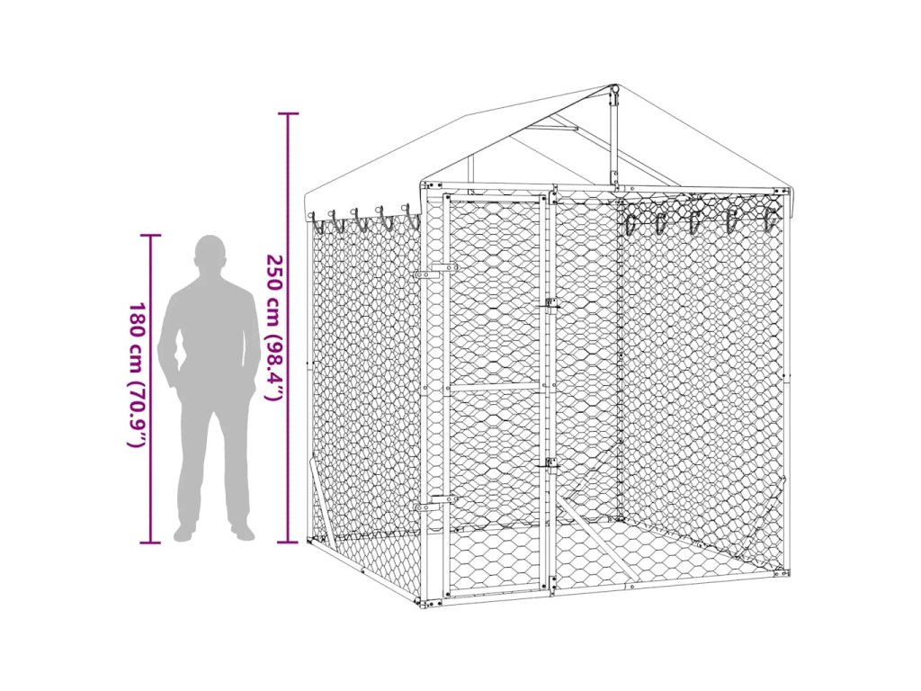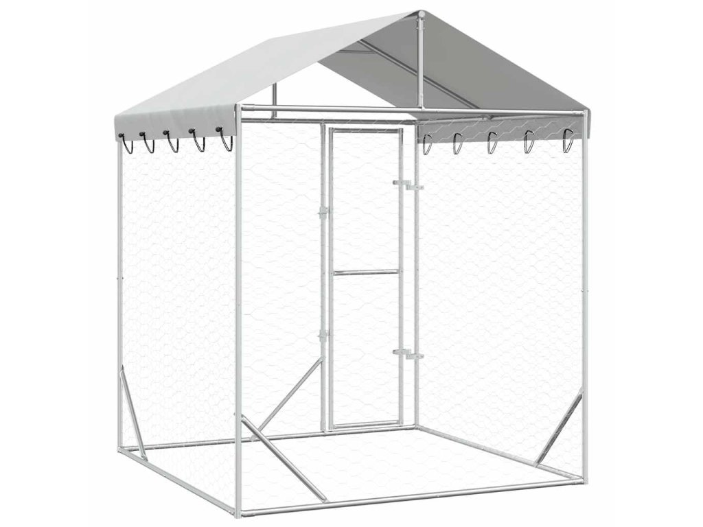 Venkovní psí kotec se střechou stříbrný 2 x 2 x 2,5 m ocel 153675