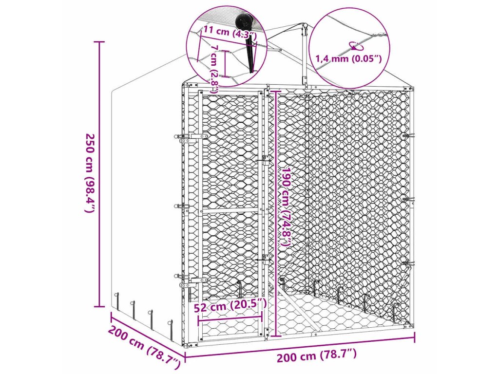 Venkovní psí kotec se střechou stříbrný 2 x 2 x 2,5 m ocel 153676