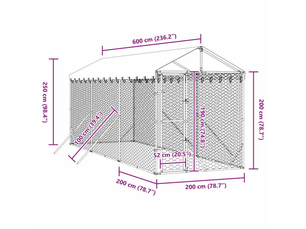 Tento praktický a prostorný venkovní kotec pro psy se střechou je ideální volbou jako venkovní výběh pro zajištění bezpečí a pohodlí vašich zvířat.
