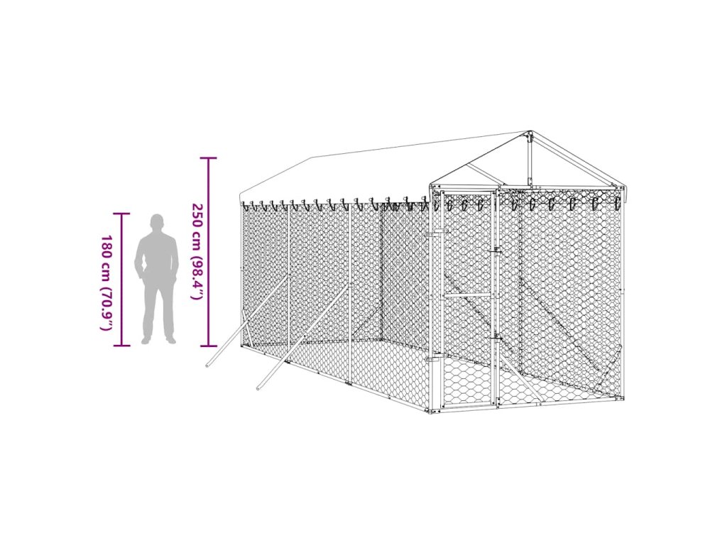 Venkovní psí kotec se střechou stříbrný 2 x 6 x 2,5 m ocel 3190483